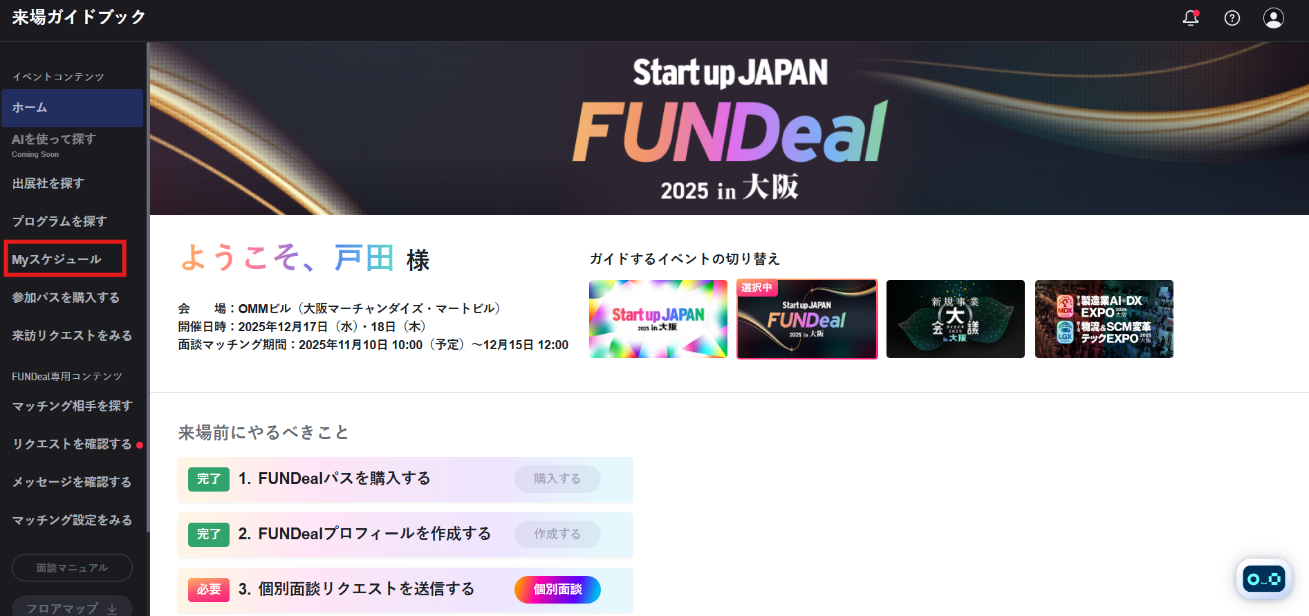 企業ブース訪問予約をキャンセルできますか 最終更新:2025年11月06日 10:27 面談をキャンセルされる場合は、必ず事前に面談相手にご連絡いただきますようお願い申し上げます。無断でのキャンセルはご遠慮ください。面談のキャンセルをするSTEP 1 来場ガイドブックにアクセスする来場ガイドブック にアクセスしてください。STEP 2 「Myスケジュール」をクリックSTEP 3 変更したい予定をクリックSTEP 4 「面談日時・同席者を変更する」をクリックSTEP 6 メッセージを入力するSTEP 7 「面談をキャンセルする」をクリックSTEP 8 ダイアログを確認して「OK」をクリックSTEP 9 キャンセルが完了しました 関連記事 お申込み後のキャンセル