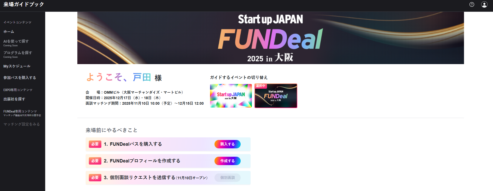 イベントにご登録いただいた情報の変更は、来場ガイドブック (来場者用マイページ)より行うことができます。