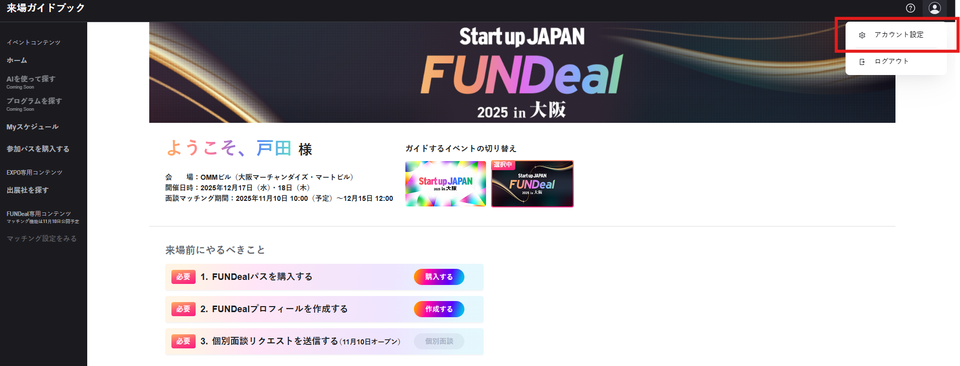 STEP 2 右上の人型アイコンをクリックして「アカウント設定」を選択